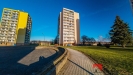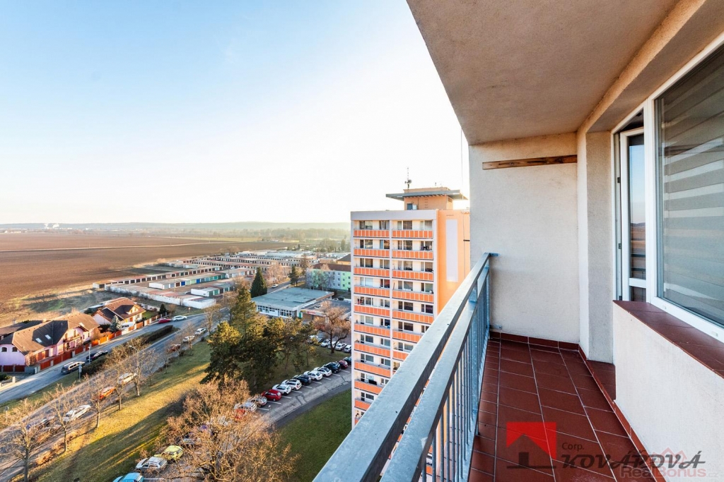 Jedná se o velmi světlý a vzdušný byt, který se nachází ve 12. patře panelového domu se dvěma výtahy. Dispozice bytu nabízí kuchyň propojenou s obývacím pokojem se vstupem na lodžii, dva samostatné pokoje (z jednoho je vstup na druhou lodžii), koupelnu s vanou a WC, komoru a vstupní chodbu.