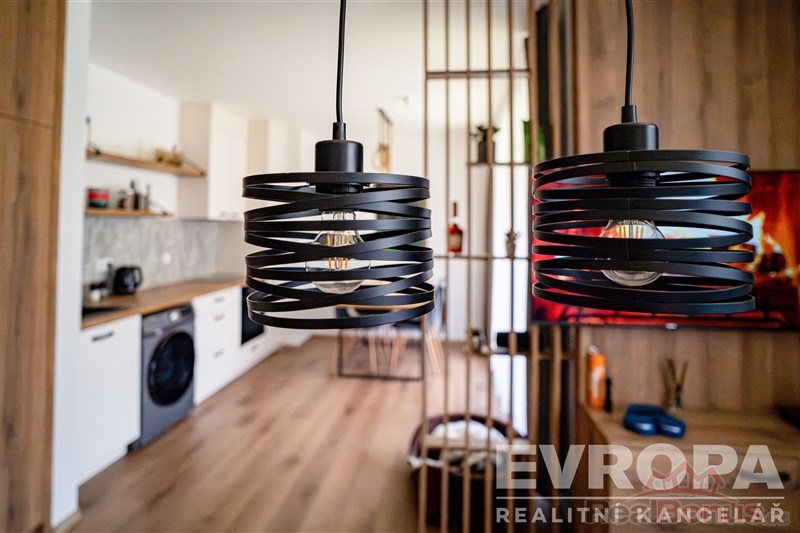 Apartmán o užitné ploše 46 m se nachází ve 2. patře nového třípodlažního cihlového domu s výtahem a nabízí praktické řešení prostoru. Hlavní část tvoří obývací pokoj s moderně řešeným kuchyňským koutem s veškerým vybavením a přístupem na lodžii, která prodlužuje obytný prostor. Ložnice je vybavena manželskou postelí a praktickým patrem na spaní, které je ideální pro děti a efektivně využívá prostor bez nutnosti dalších úprav. Celý interiér doplňuje nábytek na míru od truhláře, který byl navržen s ohledem na reálné potřeby ubytování i úložné kapacity vestavěné skříně, pracovní a úložné plochy tak podporují maximální využití každého metru.