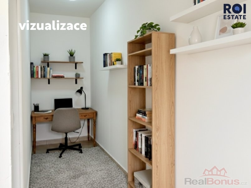 Inteligentním vestavěným nábytkem lze snadno proměnit dispozici na 2,5+kk (pracovna + vstupní předsíň), což zvyšuje atraktivitu pro rodinné bydlení i budoucí pronájem či další prodejní potenciál.