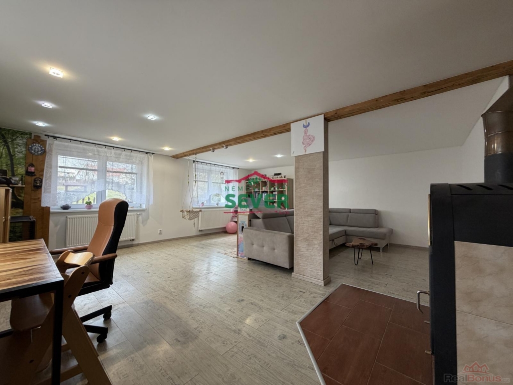 Nemovitosti SEVER Vám zprostředkují koupi patrového rodinného domu v obci Hrušovany, okres Chomutov. Dům, o zastavěné ploše 104 m2, prošel kompletní rekonstrukcí a je připraven k okamžitému nastěhování bez nutnosti dalších investic. Dispozice domu nabízí komfortní rodinné bydlení - dvě koupelny, samostatnou toaletu, ložnici, prostorný dětský pokoj s možností přepažení na dva samostatné pokoje, obývací pokoj, kuchyni a prádelnu. Dům je částečně podsklepený. V rámci rekonstrukce byly kompletně vyměněny rozvody elektřiny a vody. Vytápění zajišťuje plynový kotel v kombinaci s krbovými kamny, ohřev vody je řešen elektrickým bojlerem. Nemovitost je napojena na veřejnou kanalizaci. Na dům navazuje stodola s dílnou, kterou lze díky vjezdu přímo ze silnice využít jako parkovací stání. Na zahradě o výměře 793 m2 se dále nachází kaskádovité záhony, zahradní domek a terasa. Součástí koupě je také zahrada, o výměře 319 m2, nacházející se přes komunikaci a je aktuálně pronajímána. Veškerou občanskou vybavenost nalezneme v nedalekém městě Chomutov. V případě zájmu zajistíme optimální variantu financování pro naše klienty.