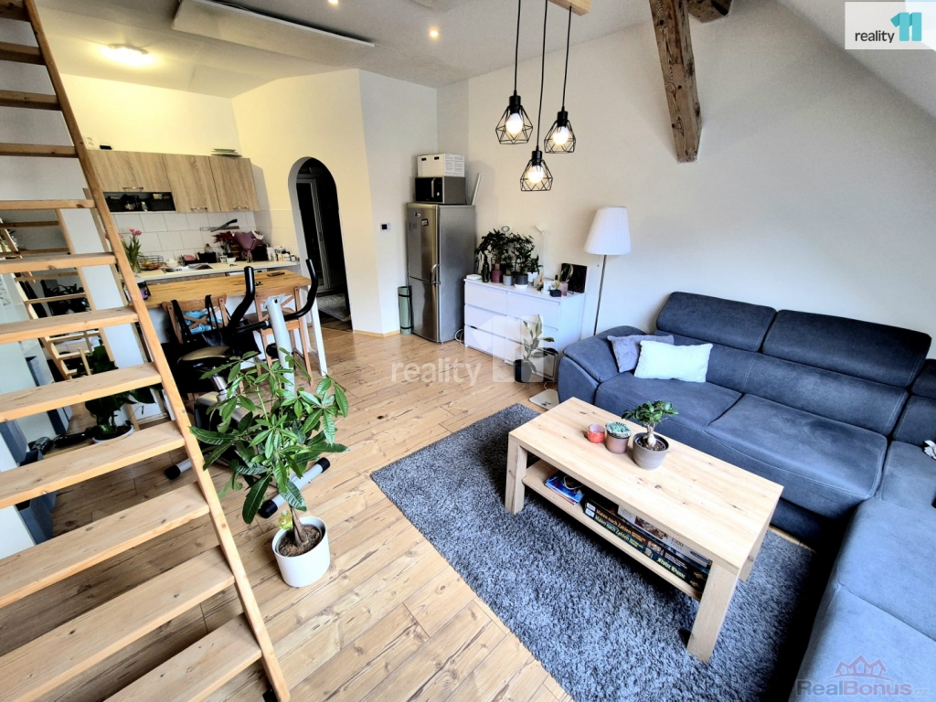 , Nabízíme k pronájmu mezonetový byt o dispozici 2+kk a celkové výměře 48 m, který se nachází ve 4. nadzemním podlaží bytového domu v ulici Tylova v Aši.