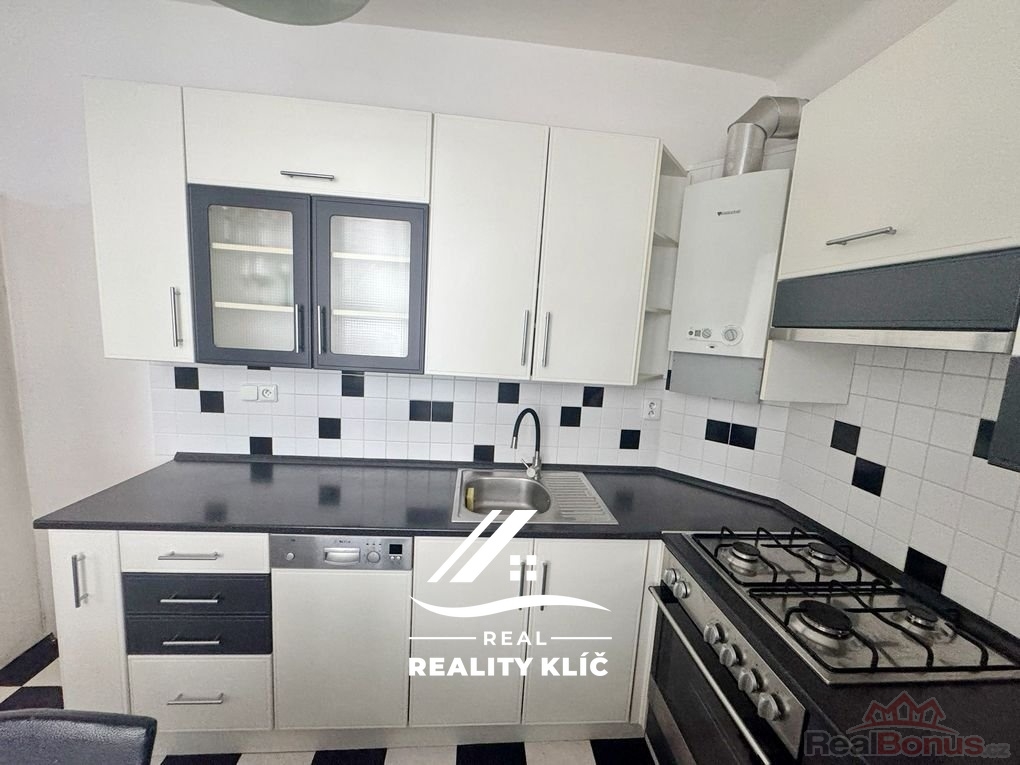 Byt nabízí velmi praktické dispoziční řešení a dostatek prostoru pro pohodlné bydlení. Dominantou je prostorná kuchyň s rohovou kuchyňskou linkou v nadčasové černobílé kombinaci. Kuchyń je vybavena plynovou varnou deskou, elektrickou troubou a myčkou nádobí a nabízí také místo pro jídelní stůl. Součástí kuchyně je také nová karma, která zajišťuje ohřev vody.