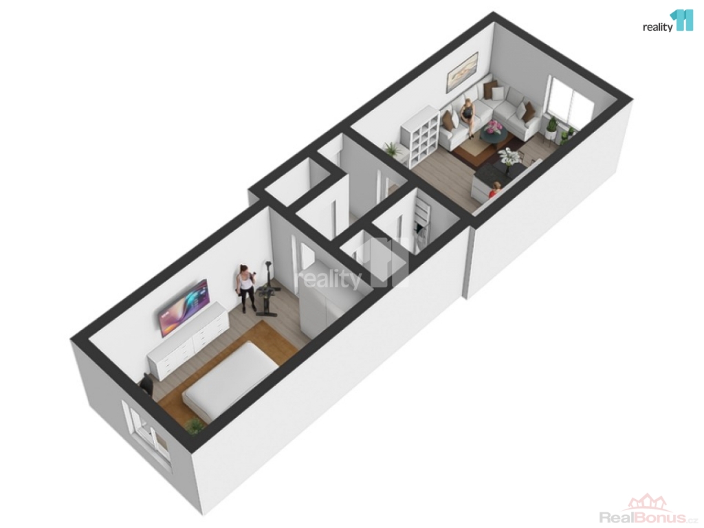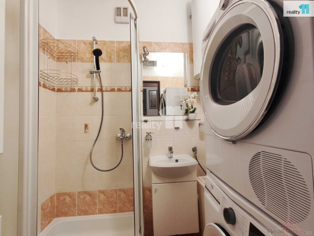 - praktické zázemí: Koupelna se sprchovým koutem, pračkou i sušičkou a nepostradatelná komora přímo v bytě.