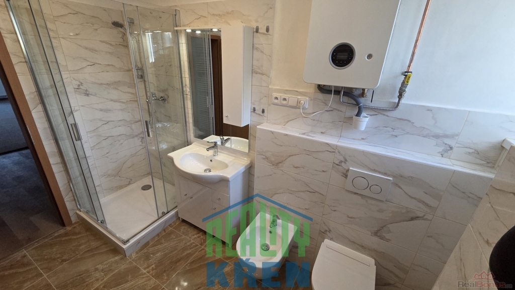 Dlouhodobý pronájem částečně zařízeného bytu 2+1/B, 1. patro cihlového domu, Tyršovo náměstí, Roztoky. Vstupní chodba, obývací pokoj a ložnice se vstupem na balkon, kuchyně, komora, koupelna se sprchovým koutem, WC a bidetem. Byt po kompletní rekonstrukci.