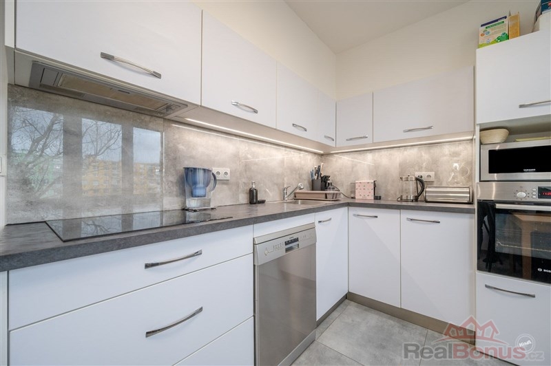 Dominantou je světlý obývací pokoj se vstupem na lodžii s příjemným výhledem do okolí. Samostatná kuchyně je vybavena moderní kuchyňskou linkou se spotřebiči a jídelním koutem.