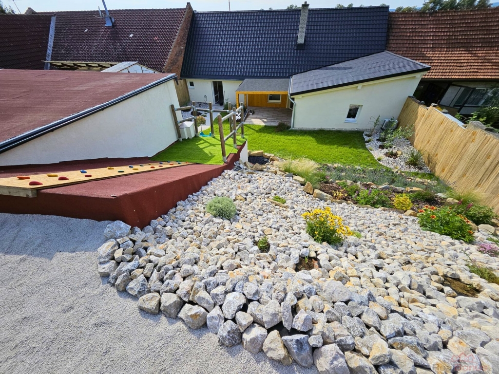 koupelna, dlažby, kamenný fasádní obklad, pergola, kompletní úprava zahrady