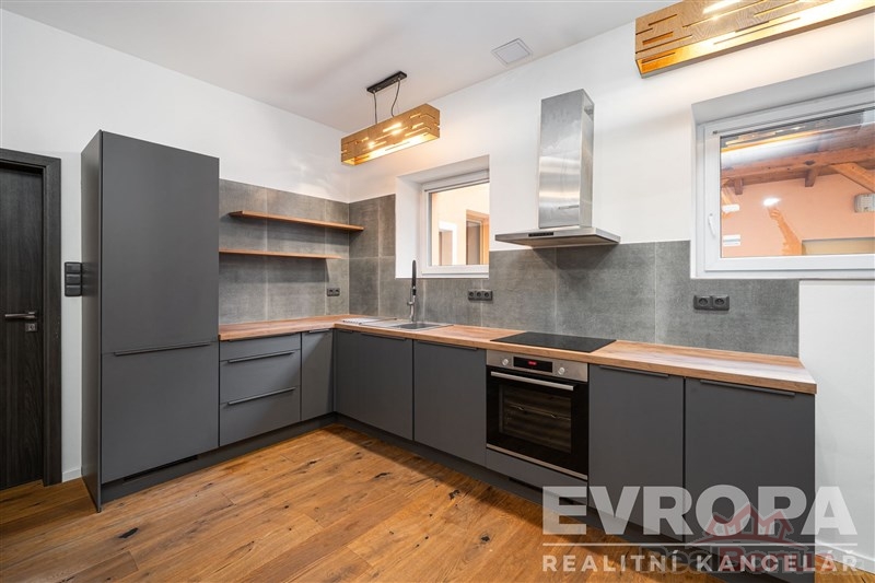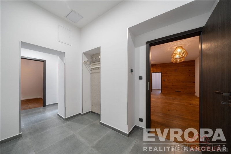 Za vstupními dveřmi je zádveří, ze kterého se vchází do koupelny se sprchovým koutem a toaletou, pokoje a chodby, která dále pokračuje do kuchyně spojené s obývacím pokojem a do dalšího pokoje (ložnice), ke kterému je samostatná plnohodnotná koupelna se sprchovým koutem a oddělenou toaletou. K bytu náleží prostorný sklep a dvě parkovací místa. Byt je po celkové rekonstrukci nové rozvody elektřiny vč. rozvaděče, rozvody vody i odpadů v plastu, dveřní obložky vč. dveří, nové podlahy (v zádveří, chodbě, koupelnách položena dlažba, v obytných místnostech kvalitní dřevěná podlaha). Součástí bytu je moderní kuchyňská linka vč. vestavěných spotřebičů (varná deska, el. trouba, myčka, vestavěná lednice s mrazákem). Okna jsou plastová s trojskly a směrují na severovýchod a jihovýchod. Součástí společných prostor domu je sušárna/kolárna. Za domem je k dispozici zázemí pro posezení / relaxaci.