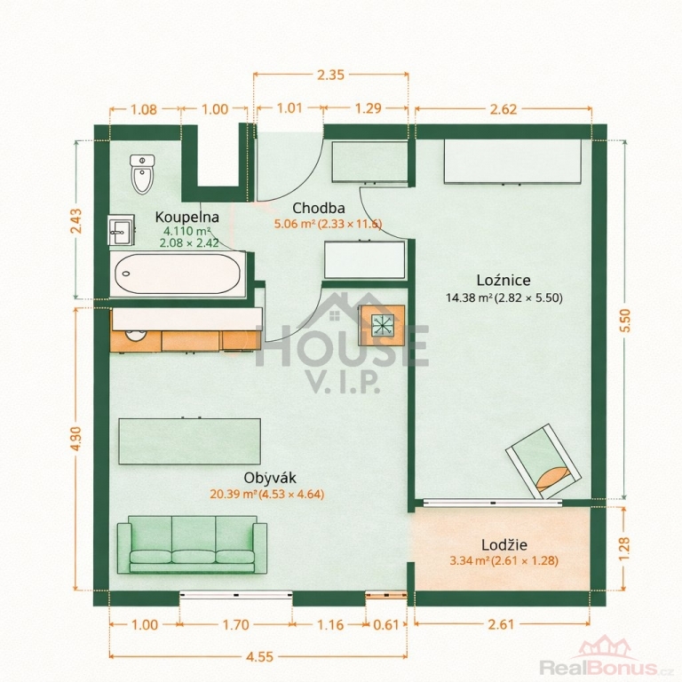 Dispozice zahrnuje obývací pokoj s kuchyňským koutem, samostatnou ložnici, koupelnu s vanou, předsíň s úložnými prostory a lodžii s příjemným výhledem. Byt působí velmi čistě, vzdušně a je připraven k okamžitému nastěhování.