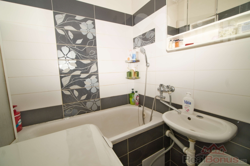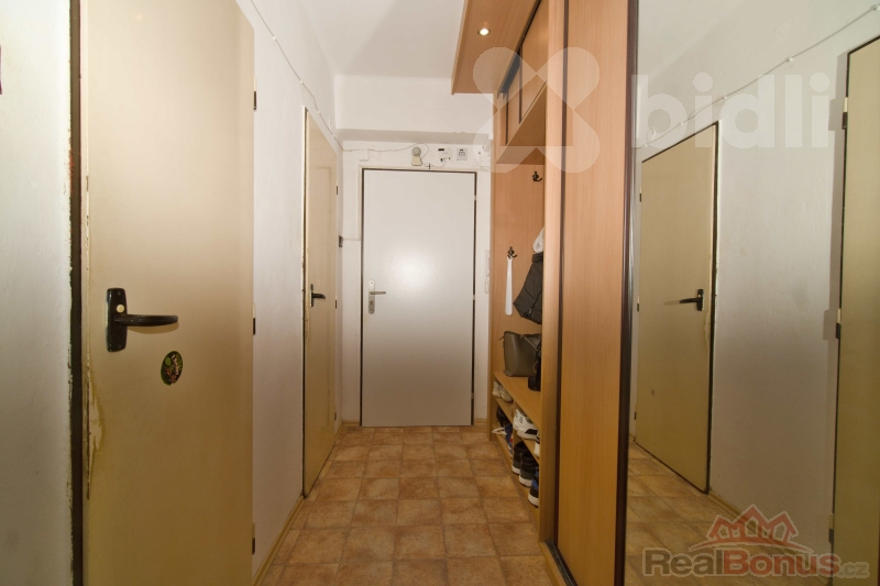 Byt zaujme praktickým řešením a komfortními prvky: ve vstupní chodbě je vestavěná šatní skříň doplněná o botník a věšáky, takže úložné místo máte vyřešené hned od dveří. Kuchyňská linka je starší, ale zachovalá, vaření je řešeno plynovým sporákem. Jádro je částečně umakartové a částečně zděné, přičemž je obložené keramickým obkladem.