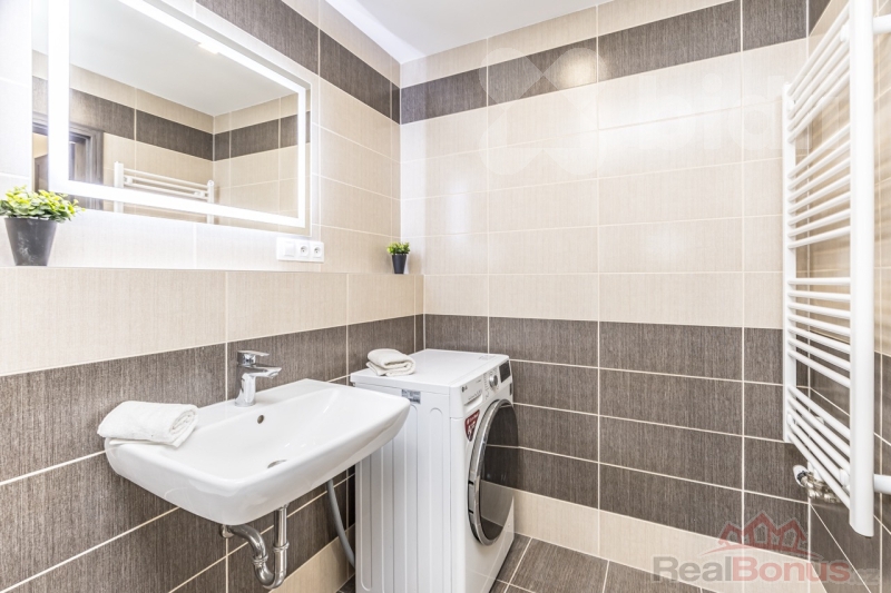 Podlahy jsou řešeny kombinací lamina a dlažby, všechny materiály i vybavení jsou v nadstandardní kvalitě.