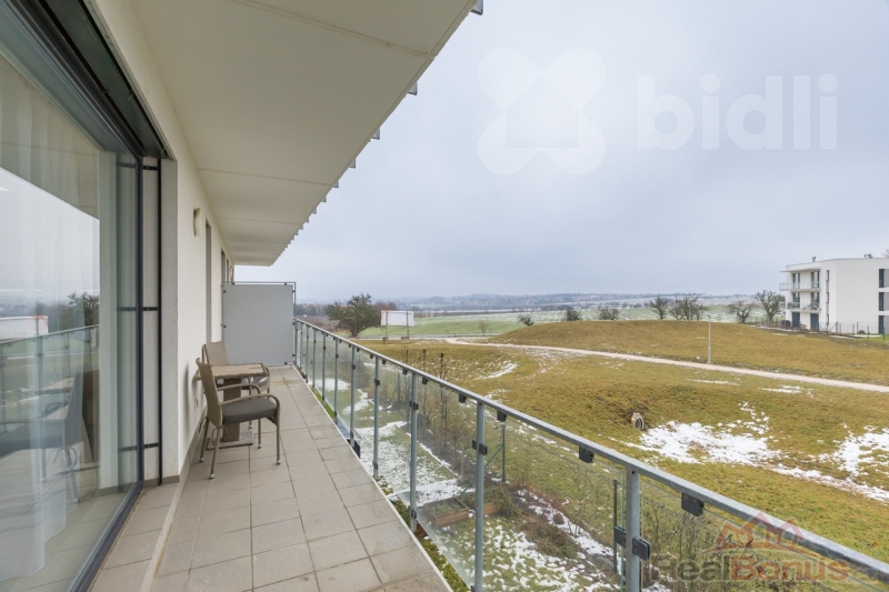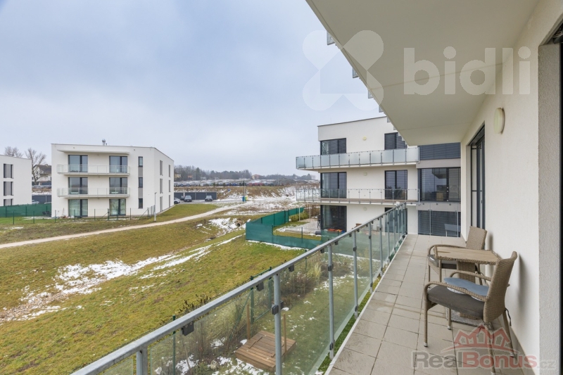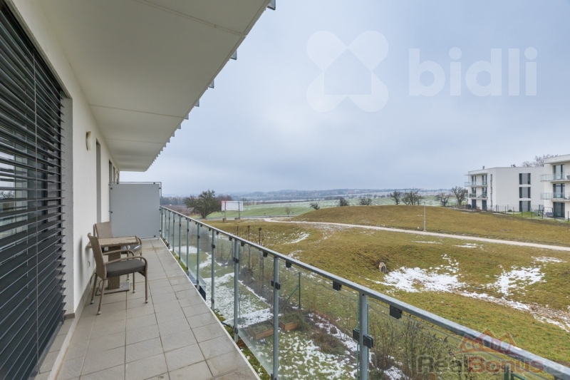 Součástí bytu je také velký balkon o ploše 14 m2 s příjemným výhledem do okolí (nad rámec plochy bytu) a také komora. Koupelna disponuje vanou a místem pro pračku se sušičkou, toaleta je samostatná. V bytě se nachází několik prostor pro vestavěné skříně. Vstupní dveře jsou bezpečnostní.