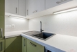 - moderní kuchyňská linka (sklokeramická deska, el. trouba, mikrovlnná trouba, myčka, digestoř, lednice s mrazákem)