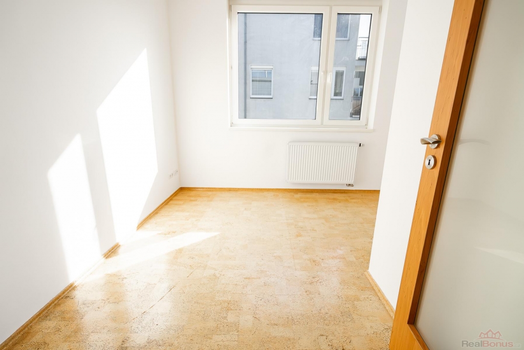 Podlahové krytiny: dlažba a kvalitní korková podlaha.