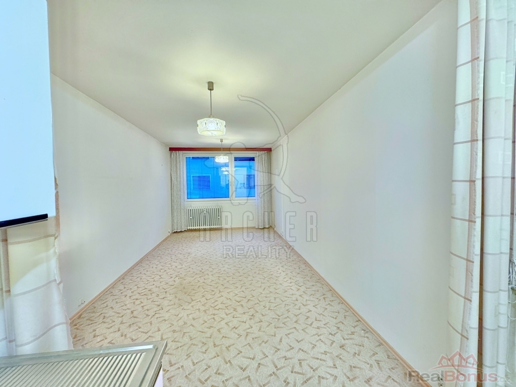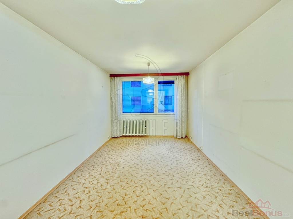 Velká okna prosvětlují pokoje ze západního směru. Koupelna má vyzděné jádro a toaleta je v samostatné místnosti. K bytu patří komora, hned vedle vstupních dveří. Byt je umístěn ve zvýšeném přízemí a má nízkou prodejní cenu, protože je ve stavu k rekonstrukci. Jelikož konstrukce domu je panelová, je možné udělat rekonstrukci s poměrně nízkými náklady.