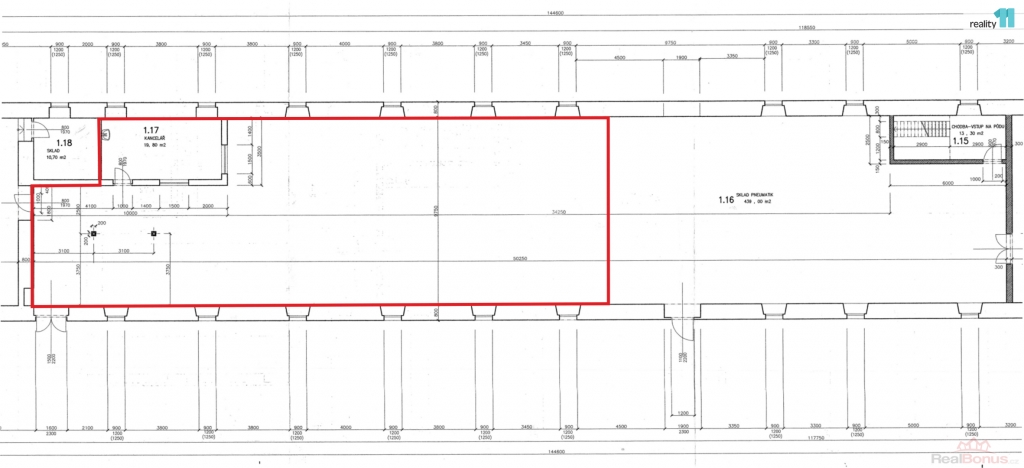 Vchodové dveře do objektu jsou široká 160 cm a výška činí 190 cm, možnost vybudovat i rampu. Prostory jsou suché a budou připravené pro nového nájemníka.