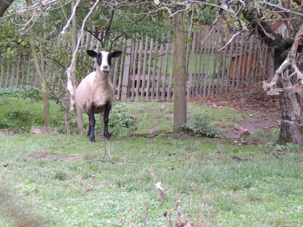Oplocený pozemek je s mírnou svažitostí, na zahradě je travní porost, ovocné stromy a dvě studny.