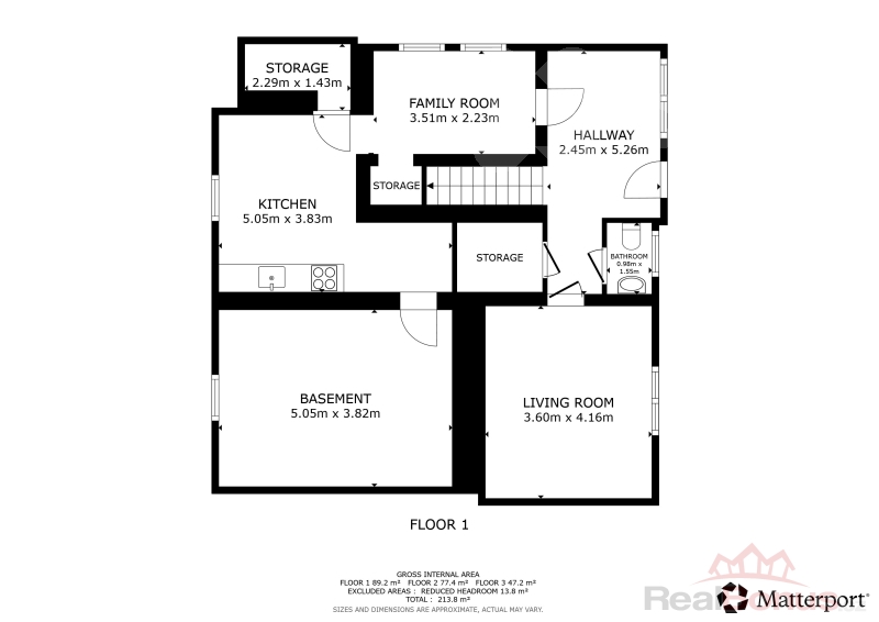 Suterén domu skýtá další obývací pokoj, toaletu a několik místností vhodných jako sklad či dílnu. Je zde i starší kuchyňská linka a sklípek. Garáž, která se nachází mimo dům je vhodná spíše pro menší vozidlo s úzkým vjezdem, případně ji lze využít jako dílnu.