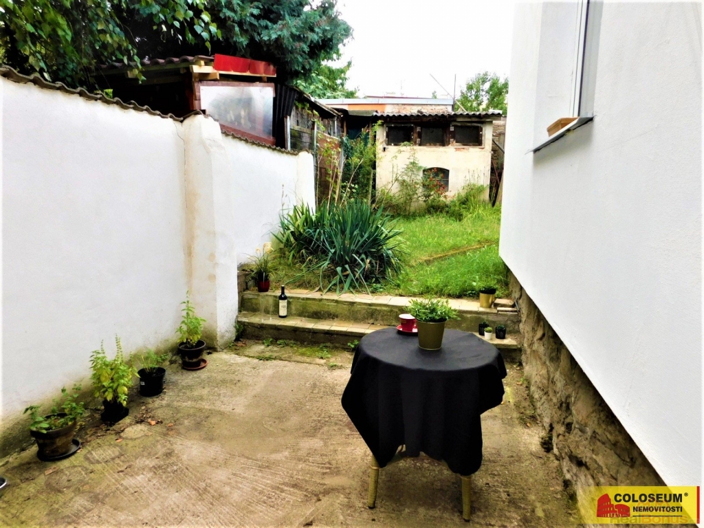 Zahrada je oplocená drátěným plotem a na zahradě naleznete i zahradní domek, kam si můžete schovat třeba nářadí.