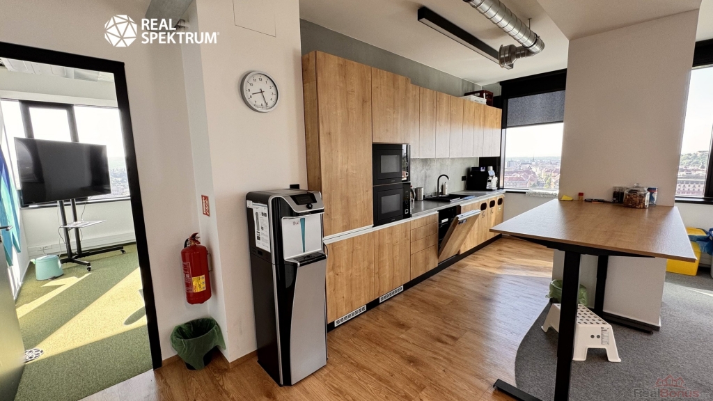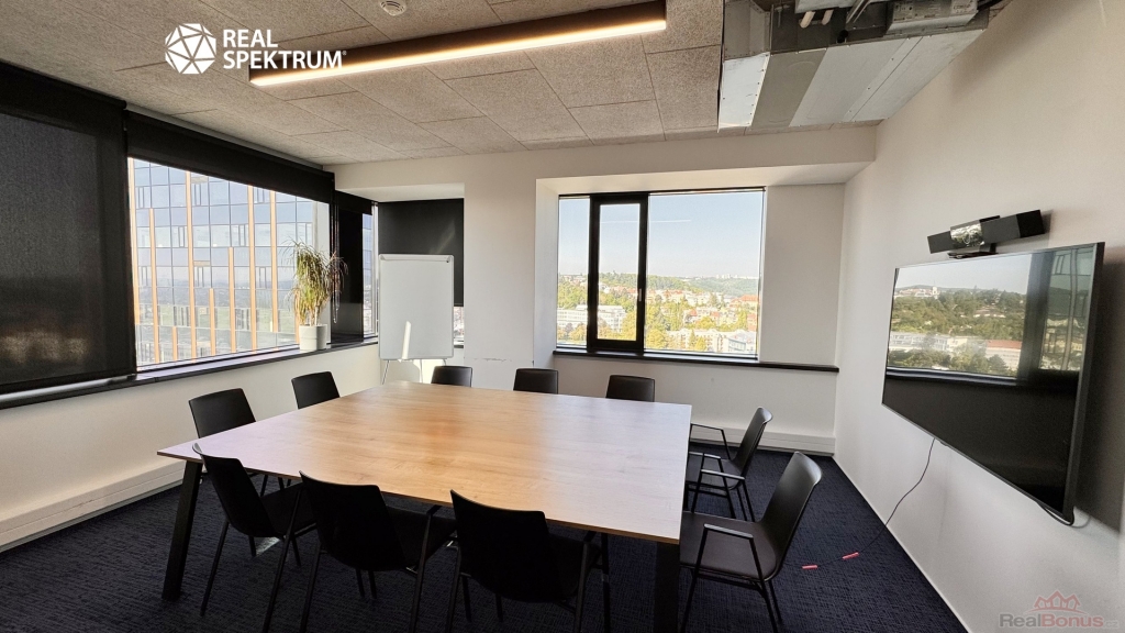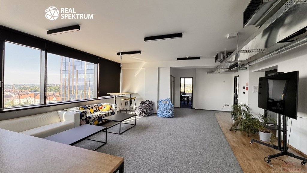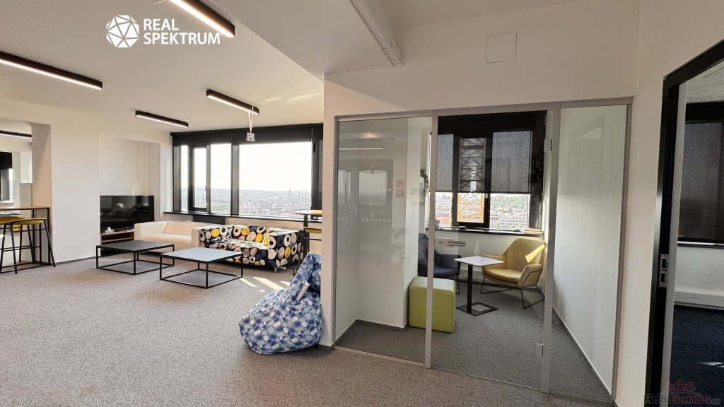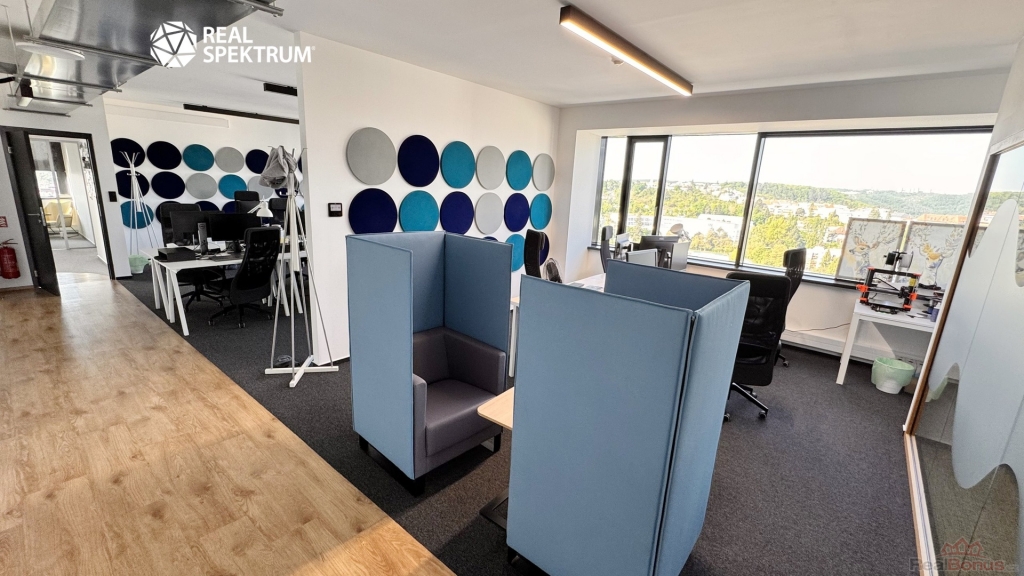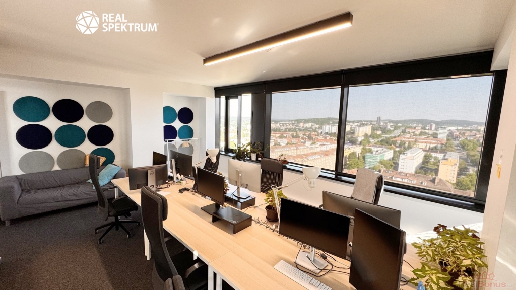 Výhled? Super. Přístup? 24/7. Vybavení? Kompletní ? zdvojené podlahy, zátěžové koberce, otevíratelná okna, žaluzie, vysokorychlostní internet, tepelná čerpadla. Recepce, výtahy, ostraha, parkování? Samozřejmost.