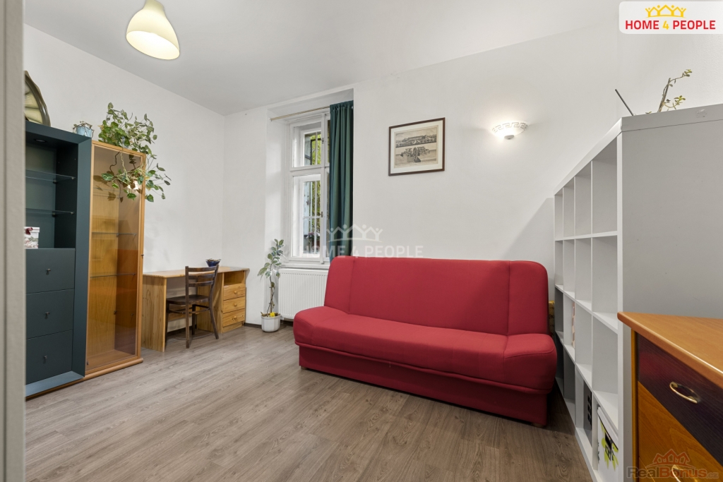Dispozice bytu aktuálně zahrnuje dvě neprůchozí místnosti jedna má okna do klidného vnitrobloku, kuchyň v prostorné chodbě, koupelnu a samostatné WC, komora. Byt je kompletně vybaven, ale je možné i část vystěhovat, vše na dohodě.