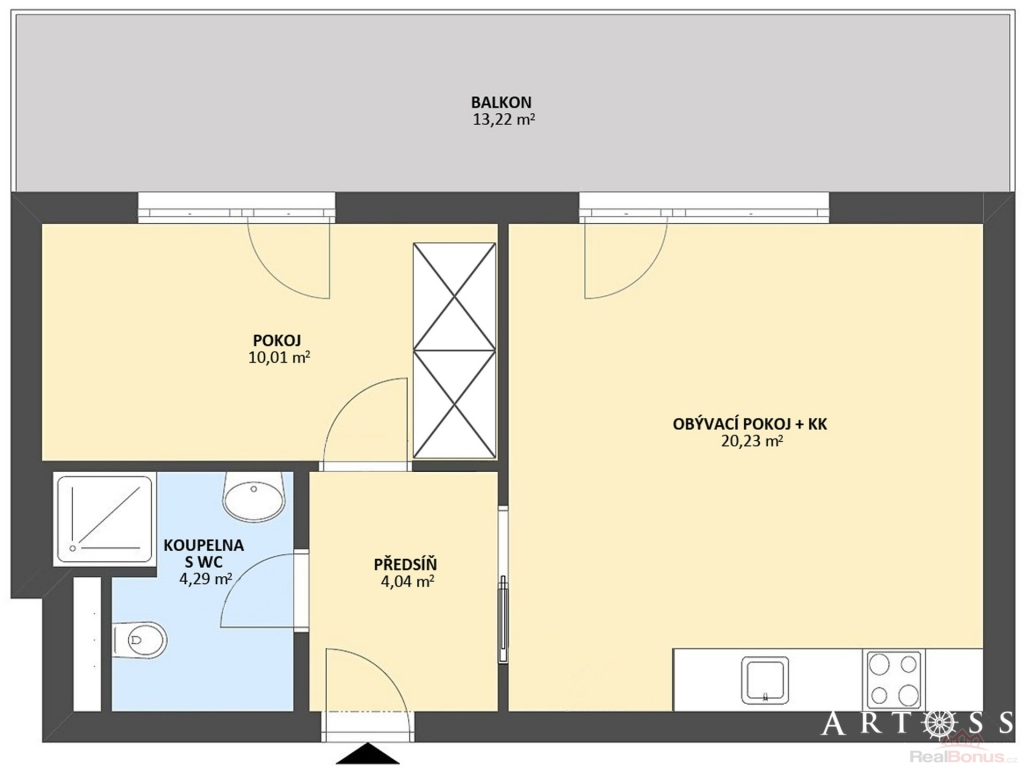 | Dispozice bytu | 2+kk |