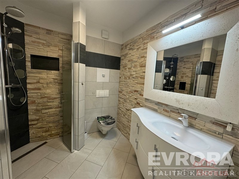 Byt je výjimečný svou kompletní výbavou součástí prodeje je veškerý nábytek na míru, kvalitní spotřebiče a prvky, které výrazně zvyšují komfort bydlení.