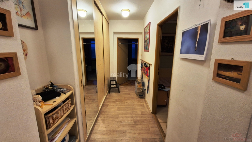 Prostorná chodba s vestavnými skříněmi cca 11 m z niž se jde do plně vybavené kuchyně 12 m, dětského pokoje 13,4 m, obývacího pokoje 19,1 m, koupelny a samostatného WC. Z obývacího pokoje do ložnice 11,8 m a na prostornou lodžii ze které večer při kávě lze pozorovat výhled na město při západu slunce...