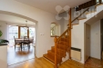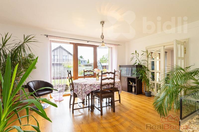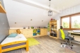 V přízemí se nachází moderní kuchyňská linka, propojená s jídelnou a prostorný obývací pokoj s krbem, který zajišťuje útulnou atmosféru i efektivní vytápění domu.