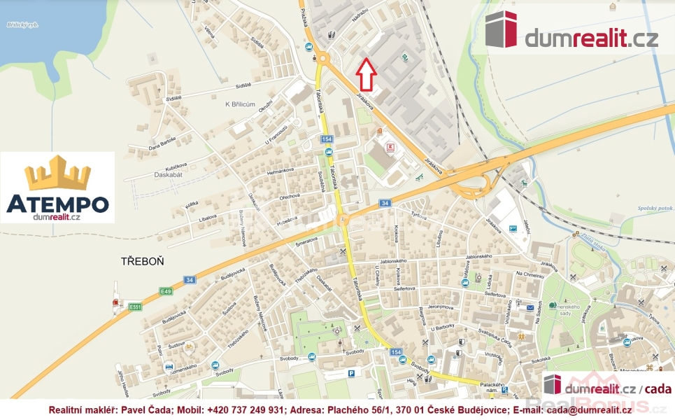 Více informací Vám poskytne realitní makléř Pavel Čada, Dumrealit.cz Vám zprostředkuje pronájem výrobních/skladovacích prostor s bezbariérovým přístupem, možností vykládek a nakládek kamionových souprav v areálu Otavan, Třeboň. Jedná se o temperovanou halu o celkové výměře 432m, kterou lze využít jako výrobní nebo skladovací prostory. Zároveň je možné si pronajmout venkovní oplocený prostor před logistickou halou o celkové výměře 400m. Dále k tomu nabízíme i možnost pronájmu kancelářského zázemí, šaten a stravovací místnosti o celkové výměře 80,5m. Veškeré prostory si lze pronajmout i samostatně pouze jako logistickou halu nebo kancelářské zázemí nebo jenom venkovní oplocený prostor. Nebytové komerční prostory se nachází v místě tranzitní křižovatky na Praha, Halámky/České Velenice - Rakousko, Jindřichův Hradec, České Budějovice. Energie jsou fakturovány dle spotřeby (7,- Kč bez DPH za kWh). Paušální poplatek 120,- Kč bez DPH/m/rok za celoroční připravenost areálu. NELZE skladovat hořlaviny a chemické látky. V místě pronájmu lze zřídit sídlo firmy. Areál se nachází 100m od železniční zastávky, 150m od stravovacího zařízení/jídelny. Více informací Vám poskytne realitní makléř Pavel Čada z realitní kanceláře A TEMPO s.r.o. fungující pod ochrannou známkou dumrealit.cz. Zajistíme Vám financování a veškerý právní servis. Těším se na prohlídce. Ev. číslo: 642576. Energetický štítek: G
