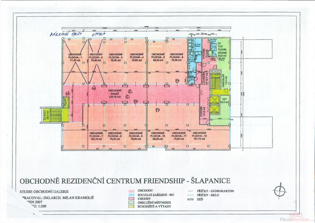2.NP ? obchodní pasáž s nebytovými prostory, sociální zařízení, 1x osobní výtah, 2x nákladní výtah.