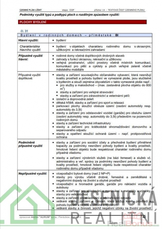 V územním plánu se pozemek nachází v oblasti BI - bydlení v rodinných domech, bydlení v objektech charakteru rodinného domu s okrasnými užitkovými a rekreačními zahradami. Přístup k pozemku je jenom po pěší stezce, která prochází přes okolní pozemky.