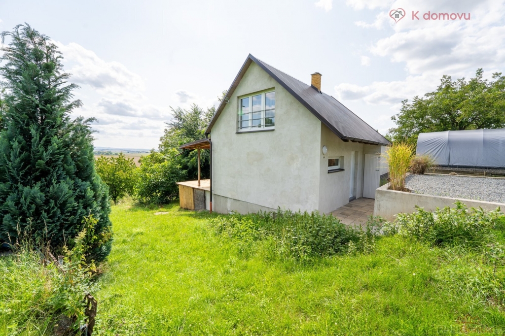V přízemí je krásná obytná místnost s kuchyní a koupelna s toaletou, krbová kamna a vstup na slunnou terasu. V podkroví je velká otevřená místnost, kterou lze využít jako ložnici nebo pracovnu. Vytápění je dostatečné krbovými kamny a v koupelně je podlahové topení s termostatem, ohřev vody je vyřešen elektrickým bojlerem. Je zde nádrž na 2000 litrů pro užitkovou vodu, pitná voda zde není, kanalizace je řešena nádrží s trativodem. Chata má vlastní přípojku elektřiny. Přístup k objektu je po zpevněné komunikaci, parkování je zajištěno pro 2 auta přímo u chaty. Součástí prodeje jsou dva pozemky cca 700m2 + cca 2257m2 o celkové výměře 2 957 m2, jsou zde ovocné stromy jako jabloně, třešeň, švestky a další. Na protějším pozemku cca 700m2 se nachází obytná buňka do které je přivedena elektřina a lze ji po opravě využít jako dílnu, sklad, ateliér nebo další místo pro spaní. Nemovitost lze financovat hypotečním úvěrem, protože chata má evidenční číslo. Uvedená cena je včetně provize RK.