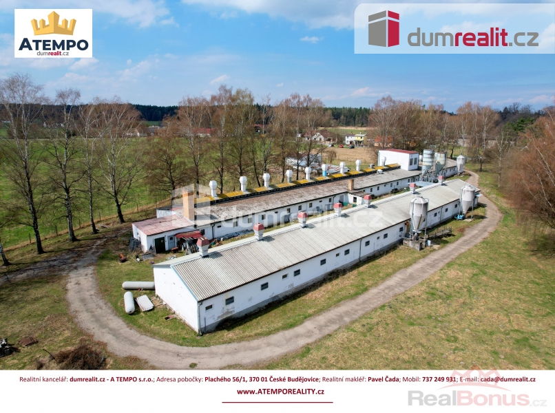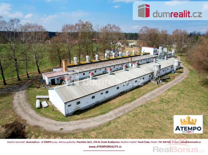 Cena je včetně provize RK a právního servisu. Více informací naleznete na www.atemporeality.cz, Dumrealit.cz Vám zprostředkuje prodej zemědělského objektu v obci Majdalena, Třeboňsko. Budovy sloužili pro chov prasat se zázemím a stojí na pozemku o celkové výměře 18.720 m se zastavěnou plochou 2.181 m. Pozemek s objekty leží na strategickém místě ve velmi žádané rekreační lokalitě CHKO Třeboňsko. Celou nemovitost lze využít pro podnikatelský záměr s přípravou výstavby domů k trvalému bydlení dle požadavků CHKO a obce. Po jednání s příslušnými úřady máme tuto variantu připravenu pro další zpracování. Druhou možností podnikatelského záměru je pokračování v zemědělské činnosti. Provozy živočišné výroby jsou technologicky rozděleny na automat řízený PC pro výkrmu a poloautomat pro porodnu a březárnu. V současné době jsou dle územního plánu plochy vedeny jako zastavitelné, s funkčním využitím pro výrobu a skladování zemědělské. Doporučuji osobní prohlídku. Více informací Vám poskytne realitní makléř Pavel Čada z RK A TEMPO s.r.o. fungující pod ochranou známkou dumrealit.cz. Těšíme se na prohlídce. Ev. číslo: 641079. Energetický štítek: G
