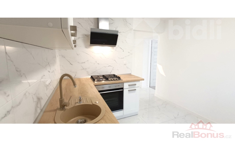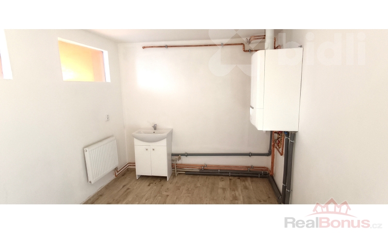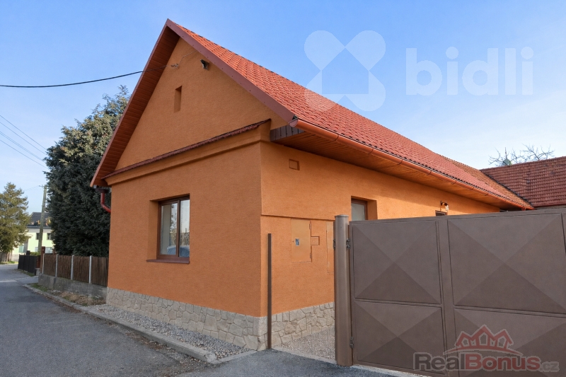 Vstup do domu vede z uzavřeného oploceného dvora do vstupní chodby, odkud je samostatný přístup do ložnice, obývacího pokoje i kuchyně, což zajišťuje praktické a komfortní dispoziční řešení. Kuchyň je vybavena novou moderní kuchyňskou linkou a novými spotřebiči včetně myčky nádobí. Na podlahách je položena kvalitní dlažba a vinyl, které podtrhují moderní charakter domu. Za kuchyní se nachází koupelna se sprchovým koutem a společnou toaletou. V zadní části domu je umístěna technická místnost s přístupem z venkovní části, což umožňuje praktické využití bez narušení obytného prostoru.