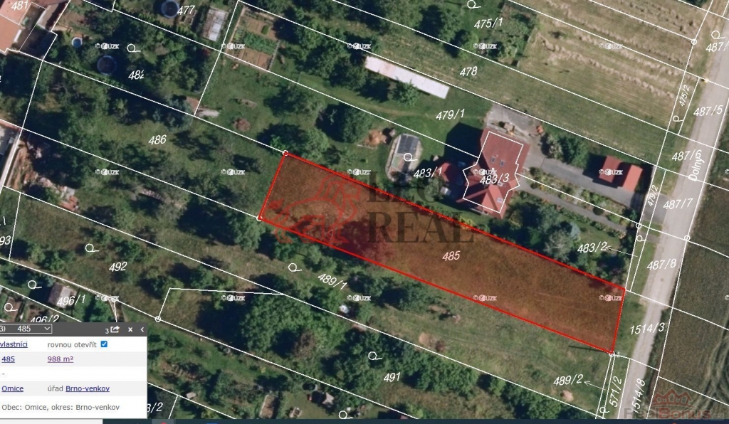 Lze ihned stavět a bydlet. Jen je nutné na vlastní náklady zřídit chodník, což je maličkost. Všechny sítě jsou na hranici pozemku. Omice u Brna.