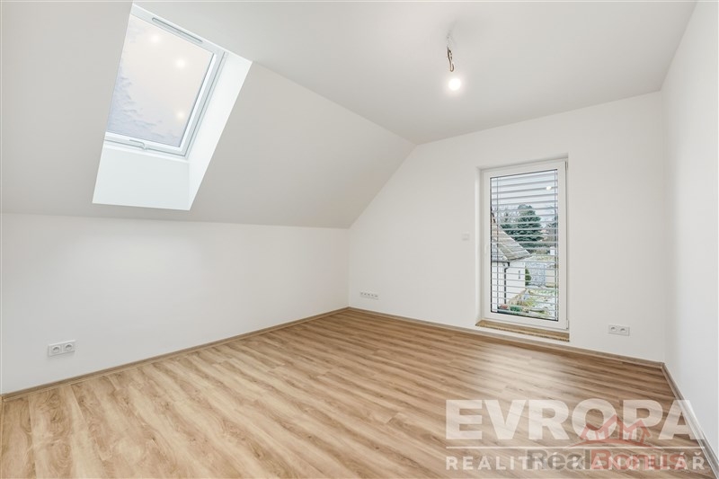 V patře jsou tři ložnice a koupelna s vanou a toaletou. Z horní chodby se přes výsuvné a skládací dřevěné schodiště vstoupí, díky sedlové střeše, do krásného půdního prostoru, který nabízí další užitnou plochu.