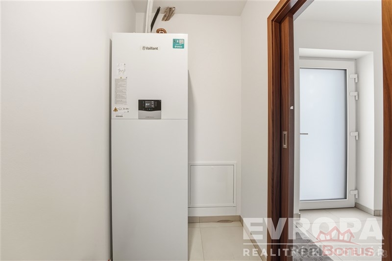 O teplo a ohřev vody se postará zemní tepelné čerpadlo zn. Vaillant. Dům je napojený na obecní vodu a kanalizaci. V letních měsících jistě oceníte klimatizaci.