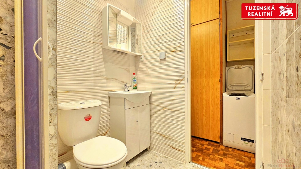 Byt je po čerstvé rekonstrukci a je plně vybaven nábytkem, spotřebiči i dekoracemi, přesně tak, jak je vidět na fotografiích a videu. Hned Vás zaujmou velkoformátové lesklé obklady a dlažba v koupelně.