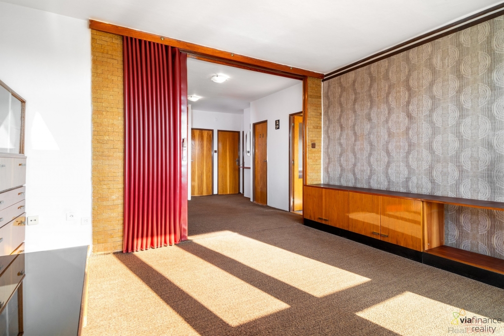 Byt o dispozici 3+1 a velikosti 70 m2 s dvěma prostornými lodžiemi, z nichž jedna z nich je prosklená se nachází ve 4. NP zděného domu bez výtahu.