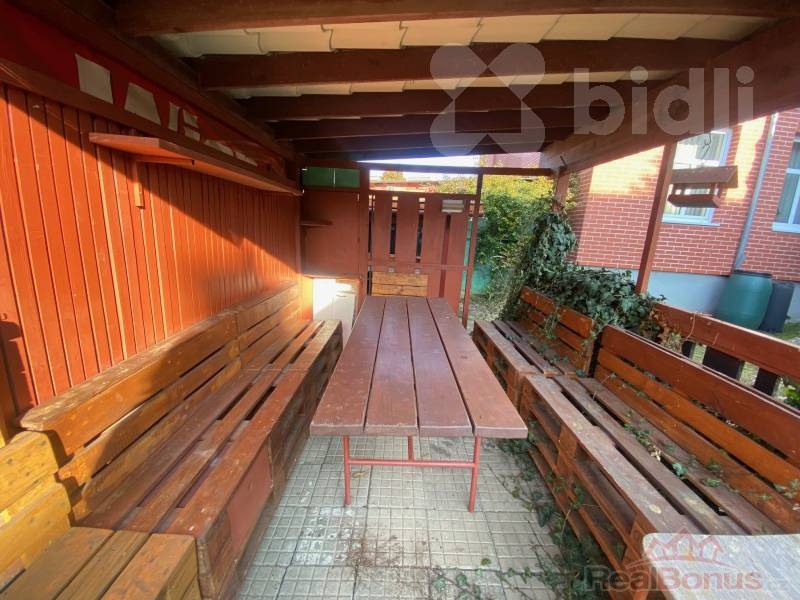 K relaxaci slouží zastřešená terasa a pro letní grilování jistě využijete dřevěnou pergolu.