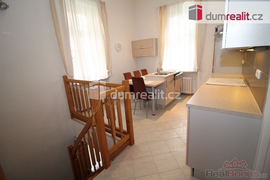 , Dumrealit.cz Vám zprostředkuje koupi krásného mezonetového bytu 3+1, který se rozkládá částečně v přízemí a v suterénu historické vily z 19. století v lázeňském centru v ulici Lidická v Mariánských Lázních. Bytová jednotka o celkové rozloze 90 m se skládá z předsíně, obývacího pokoje, kuchyně s jídelním koutem, koupelny se sprchou, toaletou a bidetem (v přízemí), dále po schodech dolů se nachází ložnice, koupelna s vanou a další toaletou, chodba a průchozí prostorný pokoj, kde by byla vhodná např. pracovna, šatna či posilovna. Byt prošel kompletní rekonstrukcí včetně elektroinstalace, vodoinstalace, štuků, podlah, jsou zde plastová okna, nové interiérové dveře. Byla instalována kvalitní kuchyňská linka, která zůstává včetně spotřebičů. Celý obvod domu byl podříznut a opatřen kvalitní hydroizolací s tím, že bytová jednotka je jako "ve vaně"). Byt se prodává včetně vybavení, po dohodě je možné byt samozřejmě také vyklidit. Vytápění a rozvod teplé vody zajišťuje nově instalovaný plynový kotel. Budova je ve velmi dobrém stavu. Lokalita, resp. ulice Lidická je jedna z nejkrásnějších ulic města v příjemném prostředí pod Gymnáziem a kostelem s výhledem na upravené budovy a hotely, cca 200 m od lesa, zároveň blízko Hlavní třídy, pošty, parku, stanice MHD. 150 m od od domu jsou potraviny pro případný menší nákup. V Mariánských Lázních je veškerá občanská vybavenost včetně úřadů, bank, restaurací, obchodů, jsou zde supermarkety LIDL, PENNY, TESCO, Kaufland, BILLA, DM, Planeo elektro, JYSK, super ZOO, TAKKO, KIK, Deichmann. Mariánské Lázně jsou úžasné místo pro život i odpočinek, jsou prošpikované sítí turistických, cyklistických a běžkařských tras. Sportovcům je k dispozici plavecký bazén, sportovní areál Viktorka, plochá dráha, zimní stadion pro bruslaře, lyžařská sjezdovka s lanovkou, jezdecká škola, tenisové kurty, v létě je v provozu koupaliště Lido s písečnou pláží. Úžasné městské parky nabízí krásná zákoutí: Kolonádu se zpívající fontánou a přilehlý labutí park, Ferdinandův pramen, Lesní pramen, Rudolfův pramen, Medvědí pramen, Geologický park, obůrku Hvozd s daňky a jeleny. Výletní kavárna Panorama, vyhlášené výletní místo Miniatur Park, Pirátův pramen a Prelátův pramen se skvělým vyžitím a dřevěnými prolézačkami a lanovým parkem pro děti. Mariánské Lázně se roku 2021 dostaly na seznam světového kulturního dědictví UNESCO, skýtají klid lázeňského města se zdravou vodou a čistým ovzduším. Mariánské Lázně se nacházejí v blízkosti německých hranic, kde je dostatek pracovního uplatnění a možnost výhodných nákupů. Byt je prost jakýchkoli nároků třetích stran či věcných břemen. Cena zahrnuje provizi RK a veškerý právní servis. V případě zájmu Vám rádi doporučíme naše prověřené hypoteční poradce. Ev. číslo: 647701. Energetický štítek: G (25 kWh/m2/rok).