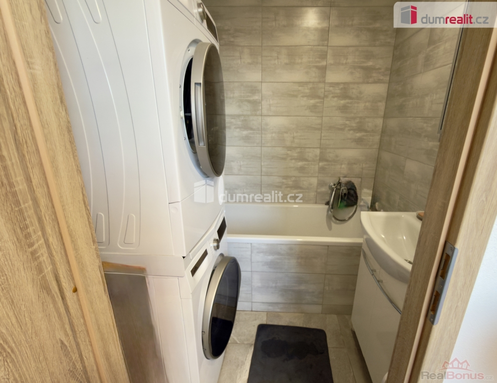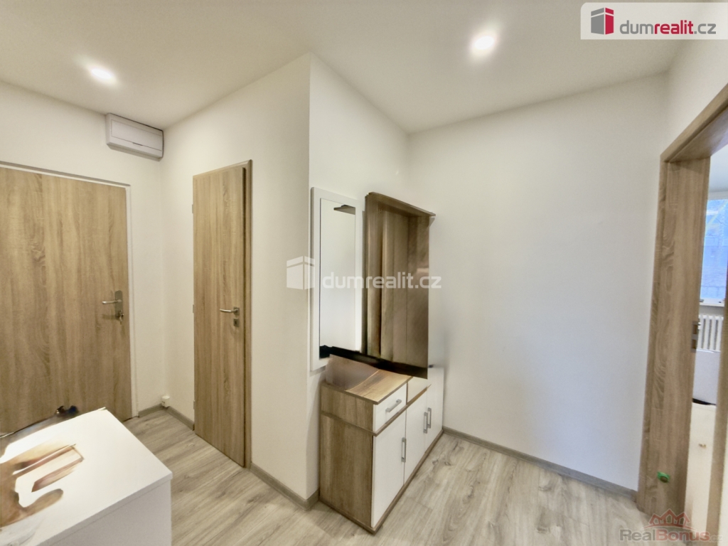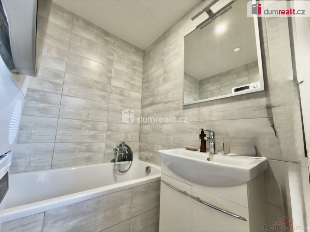 Celý byt je po nedávné kompletní nákladné rekonstrukci - rozvody vody, odpadu a elektřiny, podlahy, štuky, obklady, dlažba, sanita, kuchyňská linka (vč. spotřebičů), podhledy, dveře, atd.