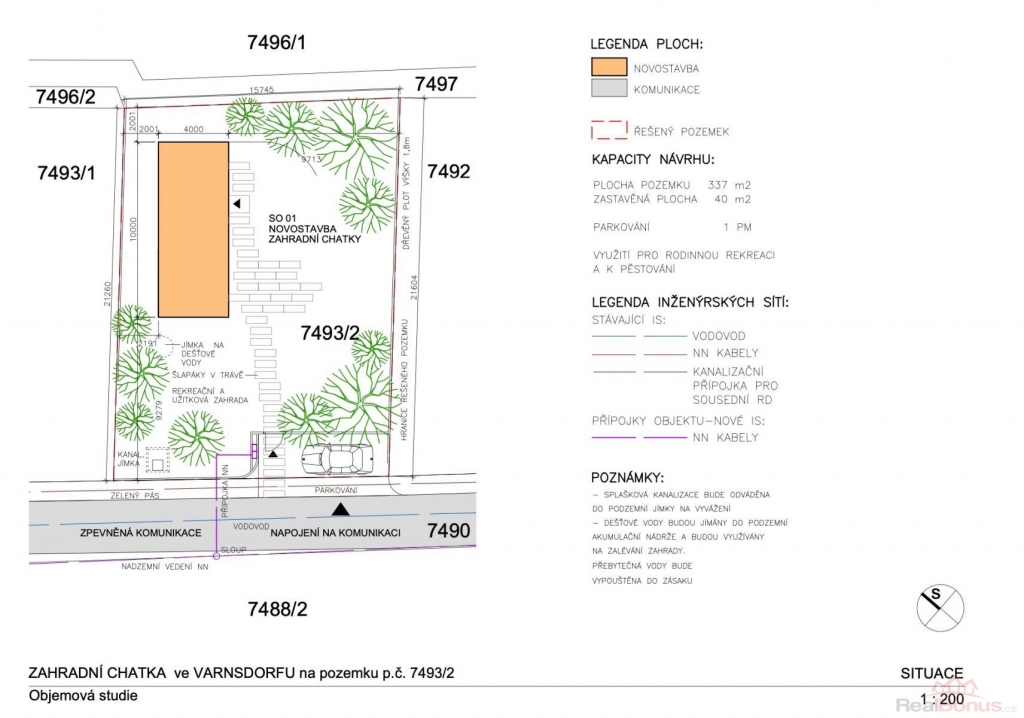 SKZ REALITY nabízí k prodeji slunný pozemek, nacházející se v klidné lokalitě ve Varnsdorfu. Pozemek je dle územního plánu ve stabilizované ploše bydlení, nesplňuje ale minimální velikost (500m2) a proto na něm nelze postavit rodinný dům. Na pozemku je možné v souladu s podmínkami územního plánu postavit zahradní chatu. Pro tento záměr byla zpracována objemová studie, která je odsouhlasena na stavebním úřadě a je na ní vydána Územně plánovací informace, která potvrzuje možnost využití pozemku pro tento účel.