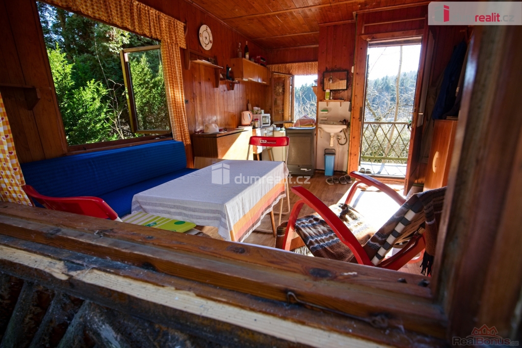, Dumrealit.cz Vám zprostředkuje prodej pozemku s chatkou o celkové výměře 967 m, situovaný na klidném okraji obce Žacléř, v příjemném prostředí vhodném pro rekreaci a odpočinek v přírodě. Lokalita nabízí dostatek soukromí, klid a zároveň dobrou dostupnost do centra obce. Na pozemku se nachází dřevěná chatka bez čísla evidenčního se zastavěnou plochou 21 m, která může sloužit jako zázemí pro víkendový pobyt nebo jako základ pro další úpravy dle představ nového majitele. Součástí pozemku je také skleník, ideální pro pěstování zeleniny či drobného ovoce. Velkou výhodou je zavedená obecní voda a elektřina přímo na pozemku, což výrazně zvyšuje komfort jeho využívání. Pozemek je vhodný pro rekreační využití, zahradničení nebo jako místo pro odpočinek v přírodě. Díky své poloze na okraji obce, v těsném sousedství lesa, nabízí kombinaci klidu, zeleně a zároveň dobré dostupnosti občanské vybavenosti.