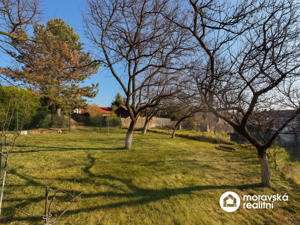 Zahrada nabízí dostatek prostoru pro odpočinek i zahradničení, roste zde několik ovocných stromů.