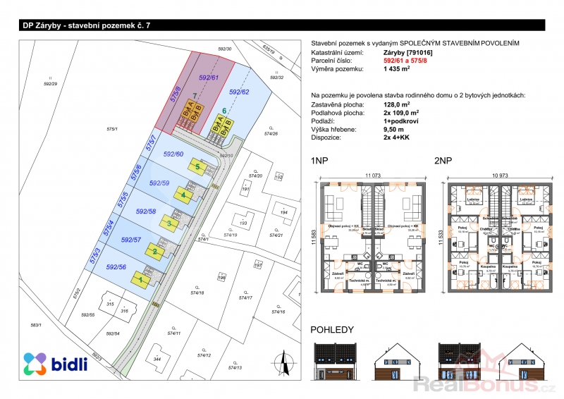 Společnost Bidli Vám nabízí ke koupi stavební pozemek s vydaným stavebním povolením pro stavbu dvojdomu v obci Záryby.