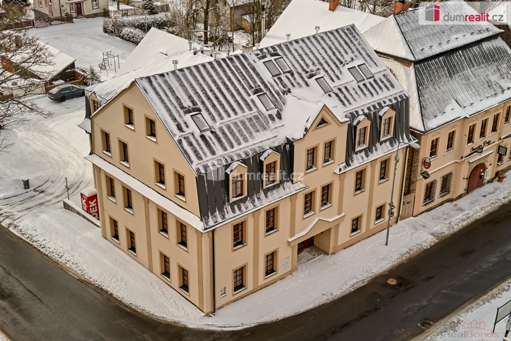 , Dumrealit.cz Vám zprostředkuje prodej apartmánů na náměstí Sv. Vavřince v Horní Blatné, které se nachází v blízkosti několika lyžařských areálů jako je Plešivec, Potůčky nebo Klínovec. Apartmán číslo 12. se nachází v podkrovní části domu a je o velikosti 51,2 m s orientací do tří stran včetně výhledu na náměstí a kostel Sv.Vavřince. Dispozice bytu 2+KK. Všechny apartmány jsou vybaveny sanitární keramikou v koupelnách, sprchovým koutem Walk-in, podlahovou krytinou a to v kombinaci velkoformátové dlažby a plovoucí podlahy v dekoru dřeva, obložkami, interiérovými a vstupními dveřmi a kompletní přípravou na osazení kuchyňské linky. Ke každému apartmánu patří jedno soukromé parkovací místo hned u domu a jedna sklepní kóje, vše je již započítáno v uvedené ceně. Součástí jsou také nádherné společné prostory a to včetně sklepního prostoru s možností posezení. Vytápění apartmánů je elektrické s dálkovým ovládáním s připojením na Wi-Fi. V apartmánovém domě se nachází 12 jednotek od 1+KK až po 3+KK různých podlahových výměr. Několik apartmánů je již prodáno. Izolant obvodových stěn 16-18cm polystyrenové dílce a 28cm minerální vlna v podkrovní části domu. Nemovitost se nachází přímo na náměstí s výhledem na hory a kostel Sv. Vavřince. Koupě apartmánu je ideální také jako investice, kdy jsou Krušné hory celoročně navštěvovány turisty a Horní Blatná patří svým umístěním mezi nejvíce vyhledávané. V blízkosti apartmánu se nachází Blatenský vrch, Vlčí jámy a mnoho turistických a cyklo tras. Nemovitost s možností odpočtu DPH z uvedené kupní ceny. Doporučuji nezávaznou prohlídku objektu s možností vybrat si právě ten VÁŠ apartmán. Ev. číslo: 650390. Energetický štítek: F