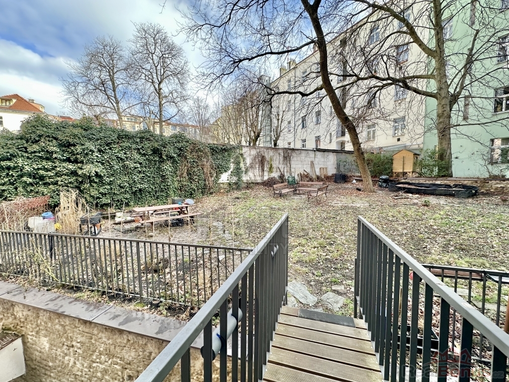 Výraznou přidanou hodnotou je společná zahrada v mezipatře domu s posezením a vzrostlými stromy - klidné místo pro odpočinek uprostřed města. V pěší dostupnosti jsou Riegrovy sady, metro A Náměstí Jiřího z Poděbrad i tramvajové spojení. Byt spojuje osobitý charakter, praktické řešení a vyhledávanou adresu v centru Prahy.