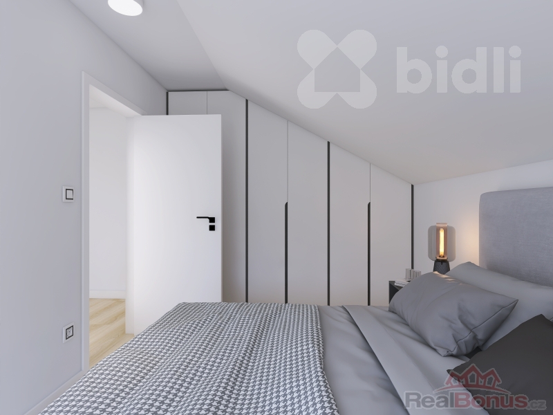 V rámci developerského projektu Bidli ve Vrskmani Vám nabízíme k prodeji nízkoenergetický mezonetový byt o dispozici 3+kk, s podlahovou plochou 85,5 m2. V přízemí se nachází obývací pokoj s kuchyňským koutem, koupelna a zádveří. V patře je ložnice, pokoj, koupelna a chodba. K bytu náleží nenáročná zahrada o výměře 190 m2. Byty jsou budovány v rámci trojdomů, tj. domů se třemi jednotkami a připomínají tak spíše řadové rodinné domy.