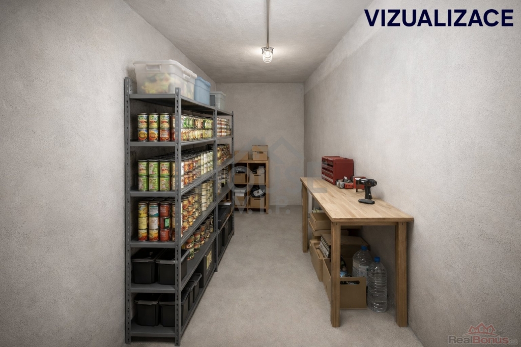 K bytu náleží také praktický sklep o velikosti přibližně 4 m2, který poskytuje dostatek úložného prostoru.